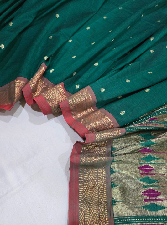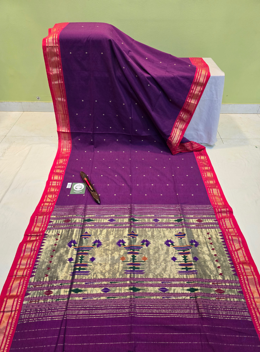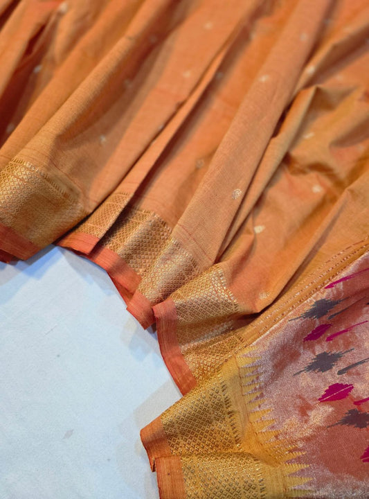 Timeless Handwoven Traditional Cotton Yellow Paithani