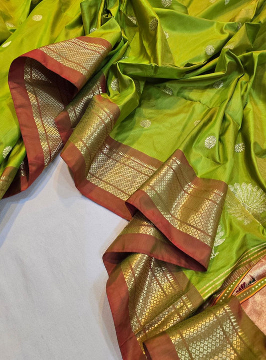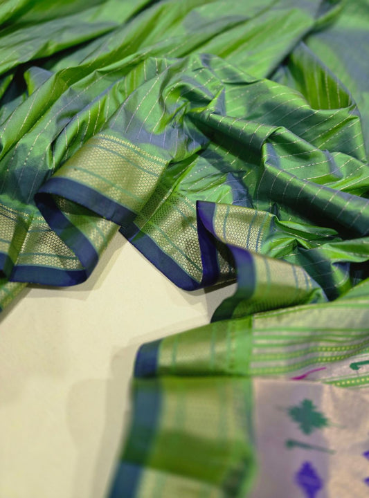 Parrot Green Tissue Elegance: The Coconut Border PaithaniRegular price Rs. 19,499.00Regular priceUnit price / per-