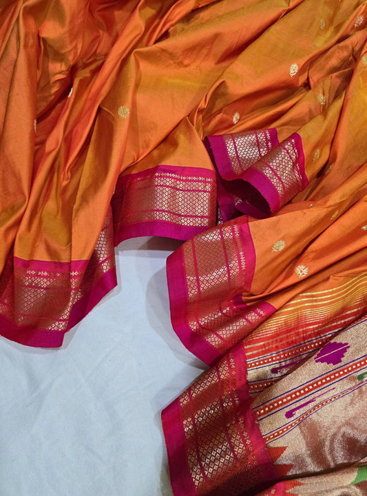 Orange with Pink border- Mor Popat Elegance: Traditional Manchali PaithaniRegular price Rs. 15,499.00Regular priceUnit price / per-